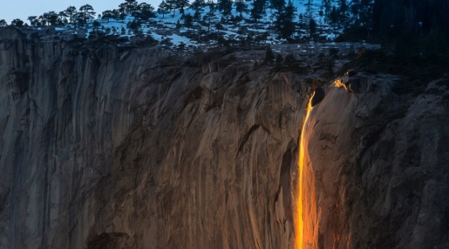 Водопад, который превращается в «огненный» поток