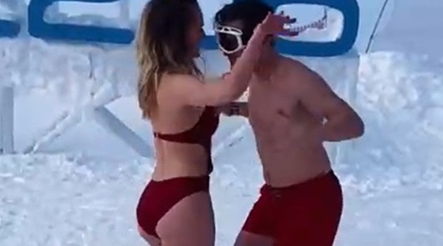 Босоногие российские туристы в купальниках станцевали на снегу в мороз