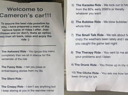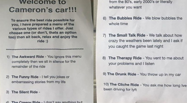 Таксист с тремя вариантами поездок прославился в сети