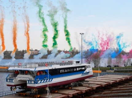 В Петербурге спустили на воду первый скоростной пассажирский катамаран проекта «Котлин»
