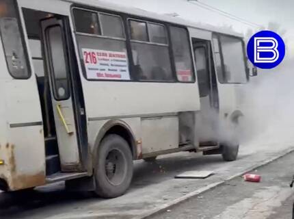 Пассажирский автобус вспыхнул около российского города и попал на видео