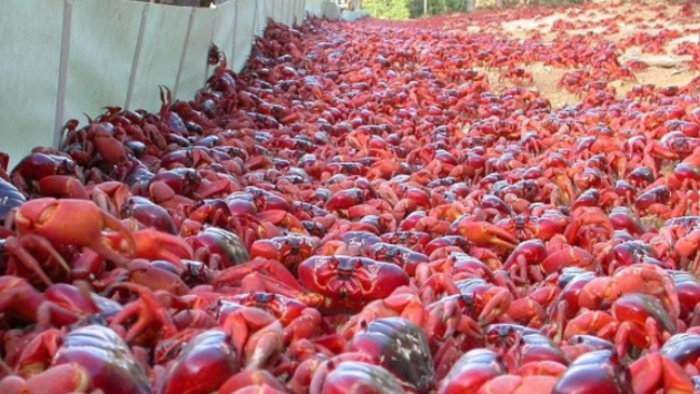 Около 50 миллионов крабов захватили австралийский остров Рождества. Местные жители и туристы показывают кадры, которые не могут не впечатлить. Полчища крабов, кажется, везде.