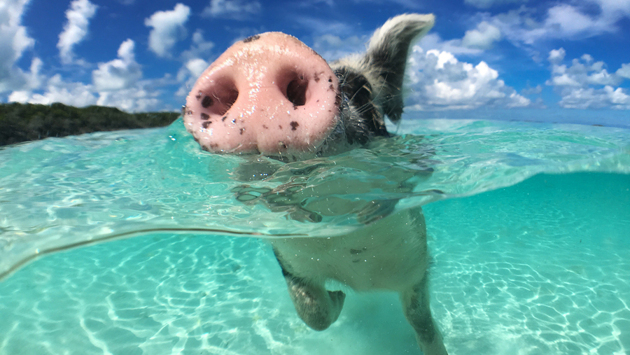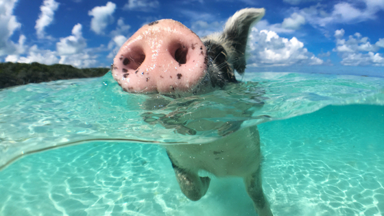 По-свински, но приятно — так обычно говорят, когда съедают слишком много вкусного, а потом страдают, но ни о чем не жалеют. Поросята, конечно, знают толк в удовольствиях, особенно те, которые живут на отдельном острове в Атлантическом океане. Остров площадью не более километра входит в Багамский архипелаг и пользуется популярностью у туристов. Правда, кроме свиней, здесь больше никто живет. Целыми днями свинки купаются в теплой океанской воде, наслаждаются солнцем и общением с туристами, которые обожают их подкармливать. Остается загадкой, как поросята попали на остров, ведь иных путей, кроме как по воде, не существует, а свиньи не могут преодолевать вплавь большие расстояния.