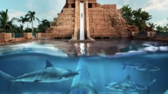 Одна из таких горок находится в Объединенных Арабских Эмиратах, в городе Дубаи. Весь аквапарк там, конечно, поражает своей красотой и продуманностью деталей, но есть аттракцион, который особенно запоминается посетителям – водная горка, которая проходит сквозь бассейн с живыми акулами.