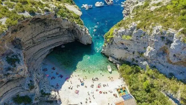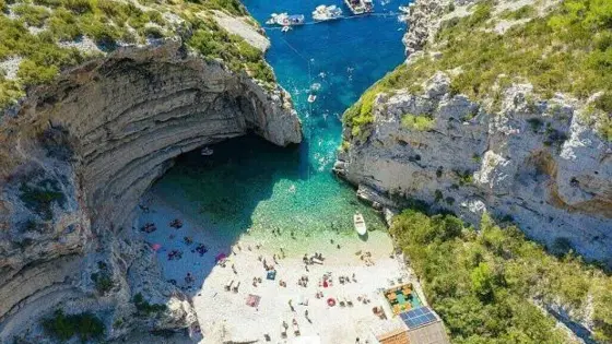 Стинива - необычный своим расположением пляж среди скал в Хорватии. Он представляет собой небольшую уединенную бухту с бирюзовыми водами. Песок состоит из мелкой белой гальки, которая контрастирует с окружающими зелеными скалами. Он был признан лучшим пляжем Европы в 2019 году.