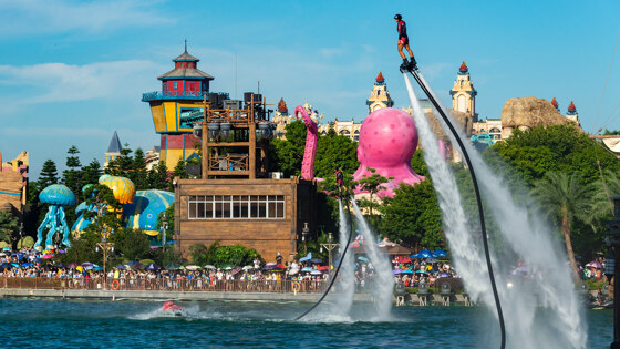 Это — крупнейший аквапарк во всей Азии, его площадь составляет 400 тысяч квадратных метров. Помимо самих водных горок, в аквапарке есть и другие развлечения, которые представлены в каждой из тематических зон. Например, на его территории есть сафари-парк и крокодиловый парк. Там же расположен специальный эко-отель, рядом с которым живут белые тигры и панды.