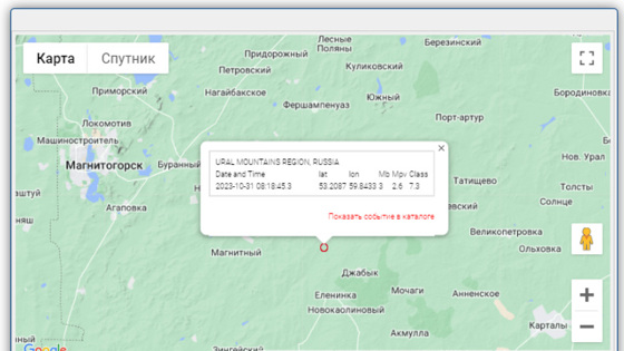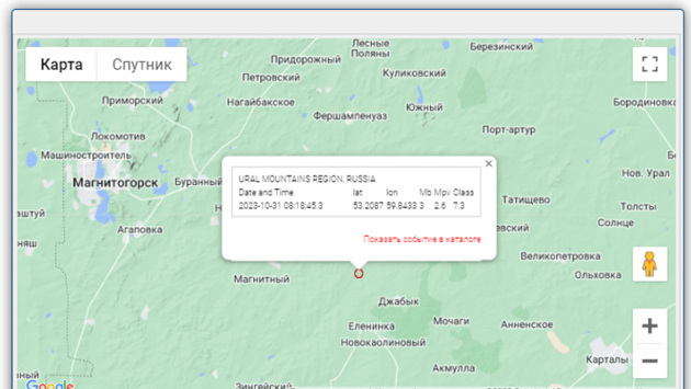 «Колебания зафиксированы 31 октября в 08:18 по всемирному координированному времени (UTC) в Карталинском районе на территории Еленинского сельского поселения. Магнитуда подземного толчка составила три единицы», — указано на сайте КНЦД.