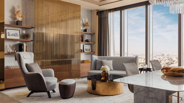 Королевский люкс Royal Suite включает три отдельные жилые зоны, изысканную гостиную с собственным баром, обеденную зону на 10 персон и уединенную комнату отдыха. Курорт также представил серию двухэтажных люксов – номер Skyline Loft и пентхаус Villa One. Занимающий площадь 755 кв.м пентхаус Villa One представляет собой современную арабскую интерпретацию фирменных пляжных вилл One&Only, перенесенных в сердце мегаполиса. Номер предлагает две спальни, элегантную гостиную для приемов (меджлис), открытый панорамный бассейн, кинотеатр и тренажерный зал, а также предоставляет своим гостям эксклюзивные привилегии, в том числе услуги персонального управляющего, спортивного тренера, спа-терапевтов и личного шеф-повара.