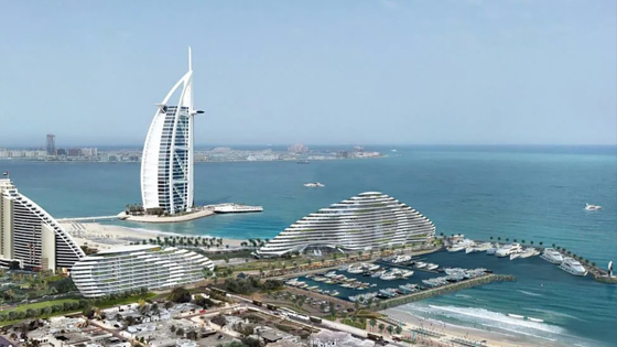Новый отель находится около символов Дубая: гостиницами Бурж эль-Араб, которая имеет форму паруса, и Jumeirah Beach Hotel, напоминающей по форме волну.