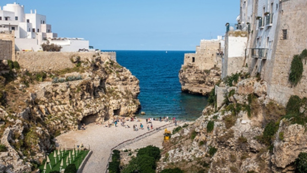 Город Полиньяно-а-Маре знаменит пляжем Лама Моначиле, название которого перекликается с пересекающим его древнеримским мостом. Пляж крохотный, зажат между двумя скалами, зато один из самых фотогеничных в Италии, обладает Голубым флагом и входит в 30 лучших пляжей Европы. Приятно прогуляться и по самому городу. Для обеда или ужина можно выбрать ресторан по совету мишленовского гида, тут таких два. Или же отыскать самый необычный ресторан, который расположен в гроте с потрясающим видом на море.