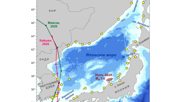 Ученые определили особенности распространения цунами в Японском море после землетрясения 2024 года