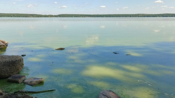 В Екатеринбурге зацвело озеро Шарташ. О ядовито-зеленом цвете воды "Уралинформбюро" рассказали местные жители.