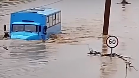 Инциденты происходят и на дорогах — пассажирский автобус перевернулся на размытой трассе, и людям пришлось добираться до «суши» по колено в воде. После работ по расчистке заторов на реке уровень воды начал снижаться, но ситуация остаётся сложной.