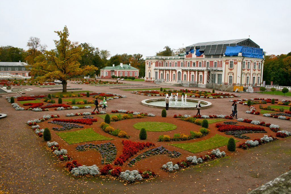 В прекрасном дворце, который построил Петр I для своей жены Екатерины I с помощью итальянца Никколо Микетти, с 2000 года на постоянной основе размещается самая большая в Эстонии коллекция зарубежного искусства. Прежде всего это живопись из Западной Европы и России, скульптура, а также собрание фарфора и серебра. Из хитов - картины наших соотечественников Айвазовского, Репина и Шишкина, работы итальянских караваджистов (Строцци), а также крупных мастеров барокко и рококо (Либери, Пьяцетта). Есть произведения из более ранней эпохи - XV века, представленные мастерской Лукаса Кранаха. Эпоха Бидермейера представлена известными художниками из Австрии и Германии.Как напоминание о том, что Эстония была долгое время частью Российской империи - многочисленные портреты императоров и императриц (в том числе Петра I и обеих Екатерин), великих княгинь и княжон или просто влиятельных мужей и дам (в том числе временной сподвижницы и фаворитки Екатерины II, княгини Дашковой), которые будут встречаться на всех трех этажах музея - от фойе до галерей на самом верху. Часть помещений дворца традиционно отдается под тематические выставки.Достоин внимания главный зал дворца с лепниной и красивой фреской на потолке, изображающей купание нимф и подглядывающих за ними похотливых фавнов. Красив и банкетный зал, откуда открывается вид на регулярный сад с геометрическими клумбами, бассейнами и статуей Нептуна с треножником.