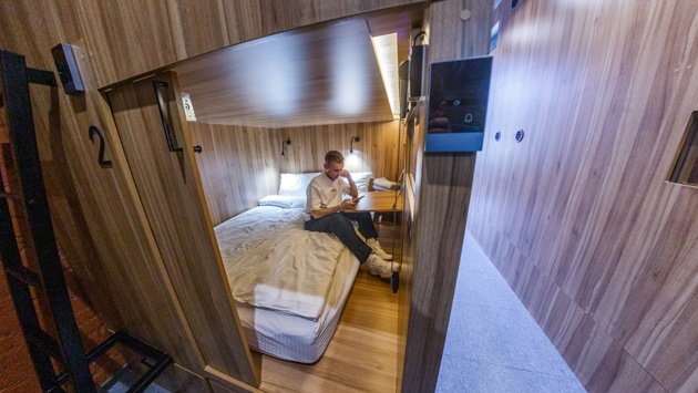 "В месяц у нас бывает около 1000 бронирований, а количество проживающих - до 1200 человек, - поделился Арманд Чимпака, управляющий капсульного отеля. - Больше всего наших гостей приезжают из регионов. Очень любят останавливаться семьи, которым предлагаем двухуровневые номера площадью 16 кв. м с телевизором и сейфом. В них могут жить до четырех человек, мы не возражаем даже если у постояльцев есть кот или небольшая собака".