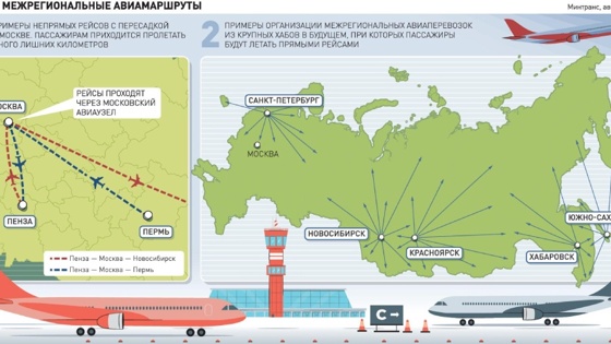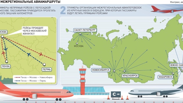 В первом внимание уделяется развитию межрегиональных перевозок из крупных хабов - например, Новосибирска, Красноярска, Хабаровска, Южно-Сахалинска, Калининграда и Санкт-Петербурга - в регионы. Благодаря развитию этих и подобных им авиаузлов возможно будет выстраивать прямые авиарейсы в регионы, полагает руководитель портала "Авиация России" Андрей Величко.