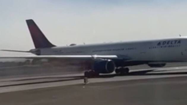 Лайнер Airbus A330 должен был выполнить рейс из Лас-Вегаса в Атланту 28 октября, однако во время руления произошла проблема с двигателем. На записи видны вырывавшиеся из-под самолета клубы черного дыма, из-за которых пришлось прервать отправление.