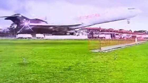 Самолет выкатился за пределы полосы, снес антенну при взлете и попал на видео