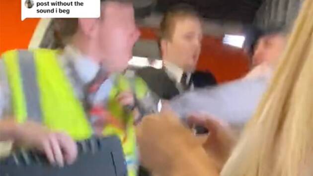 На опубликованных кадрах клиент компании выкрикивает ругательства в адрес бортпроводников авиаперевозчика easyJet и бросается на одного из них. Затем он обращает внимание на пассажиров, угрожая им расправой, и получает удар в живот от работника аэропорта.