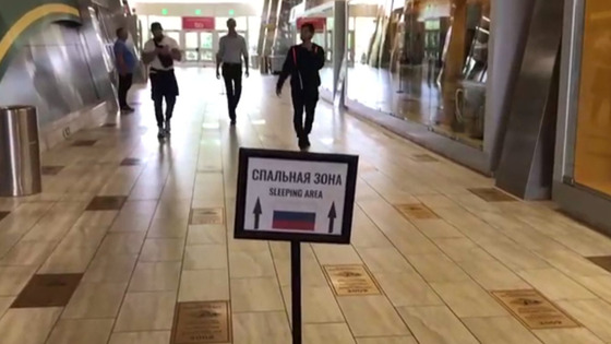 В одном из залов спорткомплекса принимающая сторона поставила ширмы, походные кровати (их использовали при организации ковидных госпиталей на том же стадионе) и повесила надписи на русском языке - «спальная зона», «туалет», «огнетушитель», «душевая», «огни». В общем, все что нужно, чтобы скоротать ночь до исторического события.