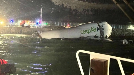 Грузовой самолет столкнулся с машиной при посадке и выкатился в море в Гонконге