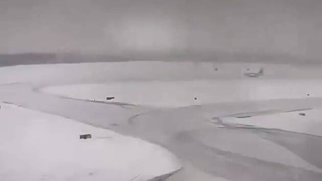 Самолет с десятками пассажиров угодил в сугроб во время посадки и попал на видео