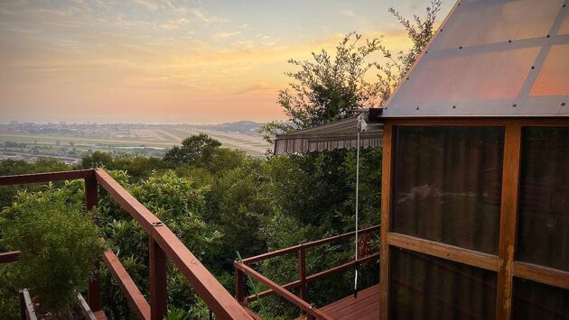 Еще один необычный и очень "зеленый" глэмпинг в Сочи. На территории расположены домики с панорамными окнами, в которых есть и собственная ванная, и терраса.