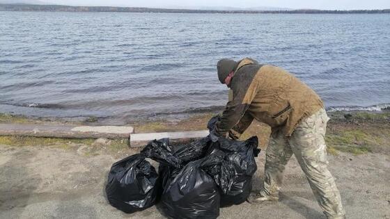 Волонтёры убрали мусор на береговой линии природного парка «Арей», сообщил в редакцию ZAB.RU участник работ.
