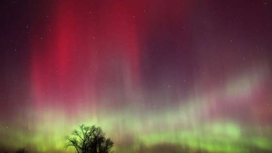 Небо окрасилось в оттенки красного и зеленого цветов. Это красочное явление стало последствием мощной магнитной бури, которая произошла из-за повышенной солнечной активности.