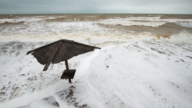 Первый удар стихии пришелся на западное побережье Крыма. На море бушуют восьмиметровые волны. Порывы ветра достигают 40 метров в секунду. На отрезке трассы Саки - Евпатория море затопило автодорогу. Сейчас там движение возможно только по одной полосе в реверсном режиме.