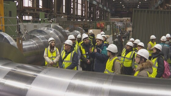 «Эта деталь весит порядка 100 тонн. Она в процессе эксплуатации крутиться со скоростью 3 тысячи оборотов в минуту», – рассказывает заместитель директора Ленинградского Металлического завода Илья Егоров.