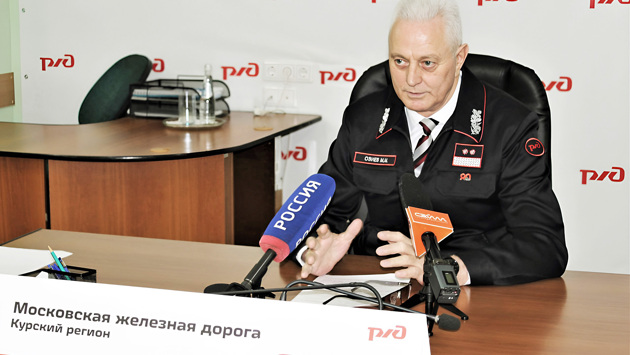 Наряду с модернизацией железнодорожной инфраструктуры Соловьиного края компания ОАО «Российские железные дороги» повышает эффективность грузовых и пассажирских перевозок. Результатами работы в нынешнем году и планами на будущее на итоговой пресс-конференции поделился заместитель начальника МЖД по территориальному управлению Мухарбек Озиев. С заботой о людях Традиционно Орловско-Курский регион обеспечивает треть объёма погрузки Московской железной дороги. Рост в этом году фиксируется в том числе по железной руде, сахару, чёрным металлам. Рекордных показателей удалось достичь при погрузке зерна. – За 11 месяцев мы осуществили погрузку со станций Курской области с увеличением к прошлому году на 2,4 процента. При этом Курская область стала лидером в нашей стране по перевозке зерна железнодорожным транспортом – объёмы выросли на 35,3 процента. Мы хорошо отработали с сельхозпроизводителями, – отметил Мухарбек Озиев. Воздушная гавань региона остаётся закрытой, поэтому весь поток пассажиров приходится на железную дорогу. Всего с января по декабрь поездами дальнего следования перевезено около 800 тысяч человек, прирост по сравнению с прошлым годом – 12,4%. Ещё порядка 730 тысяч человек перевезено в пригородном сообщении с ростом 7,1%. Холдинг РЖД является одним из крупнейших налогоплательщиков региона. С начала года объём налоговых платежей в регионе превысил 650 миллионов рублей. Кроме того, компания реализует инвестиционную программу, развивая железнодорожную инфраструктуру и обеспечивая транспортную и информационную безопасность. Общий объём вложенных средств в этом году составил порядка 1,8 миллиарда рублей. – Капремонт проведён на участке Лукашовка – Дьяконовка, а в ближайшее время завершатся работы на участке Отрешково – Охочевка. В общей сложности капитально отремонтировано 23 километра пути, – рассказал Мухарбек Магомедович. – Для этого были задействованы современные комплексы путевых машин. В следующем году в планах привести в порядок ещё 18,5 километра железнодорожного пути и 30 платформ. Компания ведёт активную работу и по защите окружающей среды. Например, в локомотивном депо станции Курбакинская в этом году завершилась реконструкция очистных сооружений. Это был проблемный вопрос, который удалось решить благодаря инвестпроекту ОАО «РЖД» «Обеспечение экологической безопасности». Объект уже работает и способен эффективно очищать более ста кубометров сточных вод в сутки, что в четыре раза превышает показатели прежней установки. Также в Курске и Льгове на экологическое топливо перевели котельные, что позволит снизить выброс порядка 60 тонн загрязняющих веществ в атмосферу в год. И пассажиры, и туристы Приоритетным направлением в работе железнодорожников является развитие внутреннего туризма. Один из новых маршрутов Белгород – Поныри запустили осенью в честь 20-летия компании. Всего за несколько месяцев пассажирами туристического состава стали уже более 2 тысяч человек. Конечная станция маршрута – посёлок Поныри, где в этом году к юбилею Курской битвы открыли одноимённый мемориал. Со своей стороны сотрудники столичной магистрали готовили к празднику железнодорожную станцию. Здесь провели колоссальную работу – здание и территория вокзала вокруг обрели совершенно новый облик. Кроме эстетичного вида, зде