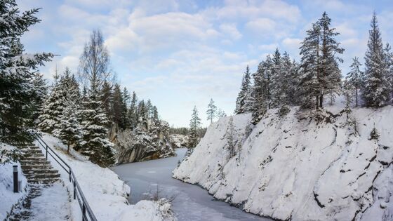 Абсолютное большинство карельских маршрутов начинается в горном парке Рускеала – отработанном мраморном карьере, где в своё время добывали материалы для отделки фасадов Исаакиевского собора. Со временем каньон превратили в огромный парк под открытым небом, где можно как познакомиться с историей горного дела, так и отдохнуть и развлечься всей семьёй: попробовать аутентичную северную кухню, выбрать в подарок близким декор из натурального мрамора или научиться делать сувениры из карельской сосны.