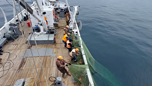 - При учете омуля порядок работы такой: ночью гидроакустическим методом определяем скопления омуля, пишем галсы - то есть разворачиваемся, а в дневное время идем тралить в те места, где несколько часов назад он был обнаружен, - поясняет Андрей Федотов. - Но представьте наше изумление, рыбы там уже не было! Омулевые скопления ушли за несколько часов, хотя раньше не меняли своих позиций в течение дней.