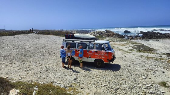 Мыс Игольный – это место, где соединяются Индийский и Атлантический океаны. Сюда Саша Холодный доехал на своей видавшей виды «Буханке», которая уже обогнула Землю в 2017-2019 годах. «Здесь "Буханка" уже была в моей первой кругосветке, когда приехала сюда с запада. Тогда еще можно было подъехать к памятному камню. Теперь, прибыв с востока, я замкнул маршрут по Африке. Мы посетим мыс Доброй Надежды и отправим машину в Южную Америку», — рассказал путешественник в своем блоге.
