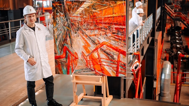 На предложение принять участие в совместном проекте Челябинского трубопрокатного завода (входящего в Трубную металлургическую компанию) и галереи "Синара Арт" (Екатеринбург) летом прошлого года откликнулось более 70 мастеров из различных городов России. Эксперты из Москвы и Екатеринбурга пригласили в Челябинск пятерых финалистов. Художники, целый месяц работая на месте, в цехах предприятия (да-да, это тоже называли чудным словом "пленэр"), создали произведения, вдохновленные металлургическим производством. Итоги проекта "Летопись современного завода" на днях представили на суд заводчан, гостей и журналистов, разместив экспозицию в одном из помещений заводоуправления.