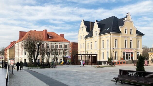 Приехали. Выхожу на автостанции. Рядом небольшая площадь, а на ней экспрессивный памятник Ивану Черняховскому. Самый молодой генерал Красной армии стоит в распахнутой шинели с планшетом в руке, его решительный взгляд устремлён на запад, где виднеются вокзал, железнодорожная водонапорная башня и единственный в России купол Шведлера, когда-то служивший крышей циркульного паровозного депо. В редакции строго-настрого запретили обозревать Музей-хранилище коньячного завода, так что исследовать город за железнодорожными путями особого смысла нет. По улице Ленина сразу отправляюсь в исторический центр. На ней многие здания уже отреставрированы, другие только ждут своей очереди. Между аптекой и домом с памятной табличкой «Французским лётчикам и советским авиамеханикам легендарного полка "Нормандия — Неман"» (ул. Ленина, 30) втиснулся фахверковый малыш под черепичной крышей с выступающей круглой средневековой вывеской, на которой красуется кружка пенного.