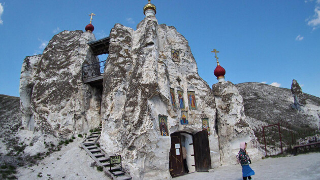 Едем дальше. Местность вокруг деревни Костомарово называют Русской Палестиной: есть здесь и своя гора Фавор, и Голгофа с крестом, и Гефсиманский сад, и поток Кедрон. А в Спасском женском монастыре несколько тех самых пещерных церквей, вырубленных в меловых скалах. Отсутствие большого количества туристов, а также иконы и кресты, утопленные в горную породу, заставляют задуматься о бренности всего земного.