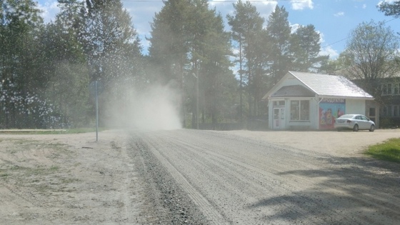 «Автомобили поднимают огромные клубы пыли, которые не успевают оседать. В поселке стоит смог. Дышать нет возможности. Жители – заложники!!!» – жалуются тиурульцы в группе «Лахденпохья Live» в ВК.