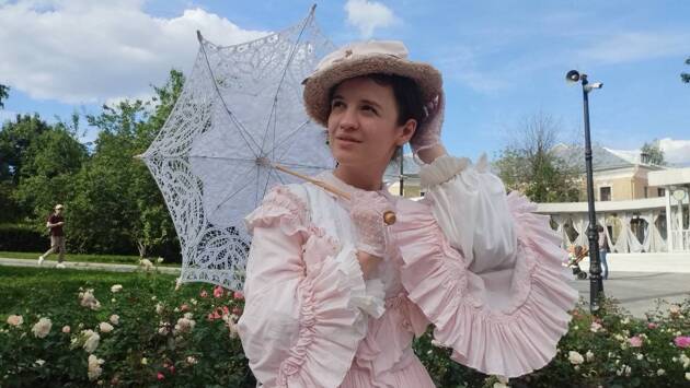 Посетителей усадьбы встречают дамы в соломенных шляпках, ажурных перчатках, с кружевными зонтиками от солнца. Они чинно прогуливаются по парку в ожидании пикника. Солидные мужчины с тросточками тоже не скучают, говорят об архитектуре, истории. Актриса музыкального детского театра «Поколение» Елена Иванова сегодня исполняет роль радушной хозяйки усадьбы Кузьминки, графини Веры Михайловны Беловой.