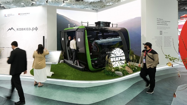 На стенде Кавказ.РФ в рамках Кавказского инвестиционного форума в Грозном показали новую гондолу для канатной дороги на курорте "Ведучи" в Чечне. Кабинку назвали "Ведучилет", в ней можно посмотреть на виды будущего курорта.