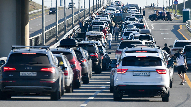 На подъездах к Крымскому мосту со стороны Краснодарского края стоит многокилометровая пробка: более тысячи машин ожидают очереди на КПП.