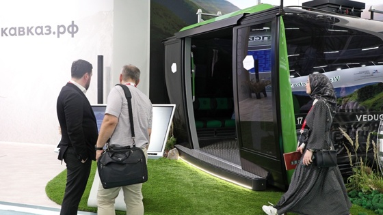 На Кавказском инвестиционном форуме на стенде "Кавказ.РФ" показали новую гондолу для канатной дороги горного курорта в Чечне. Кабинку назвали "Ведучилет", в ней можно было посмотреть на виды будущего курорта. Кабина VL1 вмещает 32 пассажира с горнолыжным инвентарем. По сути, это воздушный экскурсионный автобус. Съемку местности для посетителей КИФ-24 сделали всего за пару недель до форума с помощью беспилотника.