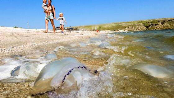 Вообще-то у побережья Крыма обитает два вида медуз. Маленькие аурелии и куда более опасные для человека корнероты. С диаметром купола в полметра и фиолетовыми щупальцами. Прикосновение к ним вызывает болезненные ожоги, может привести к сильнейшей аллергической реакции. Симптомы – тошнота и рвота, боль в голове и животе, сонливость, крайняя слабость. Без медицинской помощи не обойтись