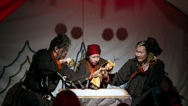 В "Подарке" Тувинского театра кукол режиссер Чадамба Айдыс обратился к теме Великой Отечественной войны. История о том, как мальчик из семьи оленеводов помог отцу, воюющему на фронте, развернулась в эстетике театра теней и тоже под живое звучание инструментов.