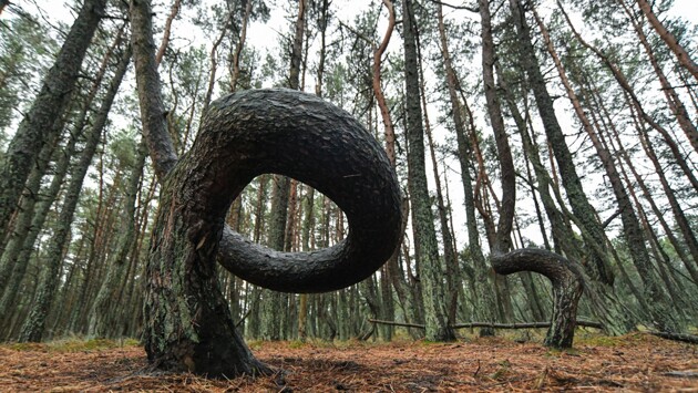 Деревья здесь высадили в 1961 году для укрепления песков на Куршской косе, и стволы некоторых из них вдруг начали закручиваться в спирали. Ученые предполагают, что так произошло из-за ветров, дующих в одном направлении. Но, по мнению скептиков, это не объясняет того, почему "танцуют" только некоторые деревья, а другие – абсолютно ровные.