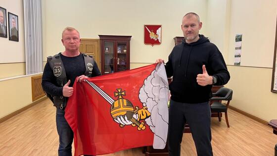 Сегодня утром байкеры мотоклуба «Дикий ветер» отправились в большое путешествие. Накануне Мэр Вологды Андрей Накрошаев передал им флаг Вологды, который они установят в конечной точке маршрута — за полярным кругом.