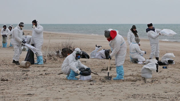 Ночью специалисты на шести судах с прожекторами обработали мазутные пятна сорбентом. Утром 6 января количество судов выросло до 10. Также планируется увеличить и количество инженерной техники - самосвалов, экскаваторов, погрузчиков и вездеходов.