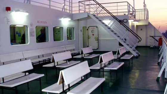 Паром имеет возможность перевозить специальную и строительную технику, а также грузовики, легковые автомобили, автобусы и мотоциклы. Стоимость билетов для одного пассажира без автомобиля составляет 6820 рублей.