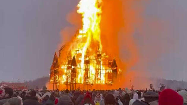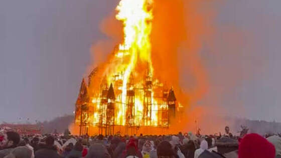 В арт-парке "Никола-Ленивец" сожгли деревянный замок на Масленицу